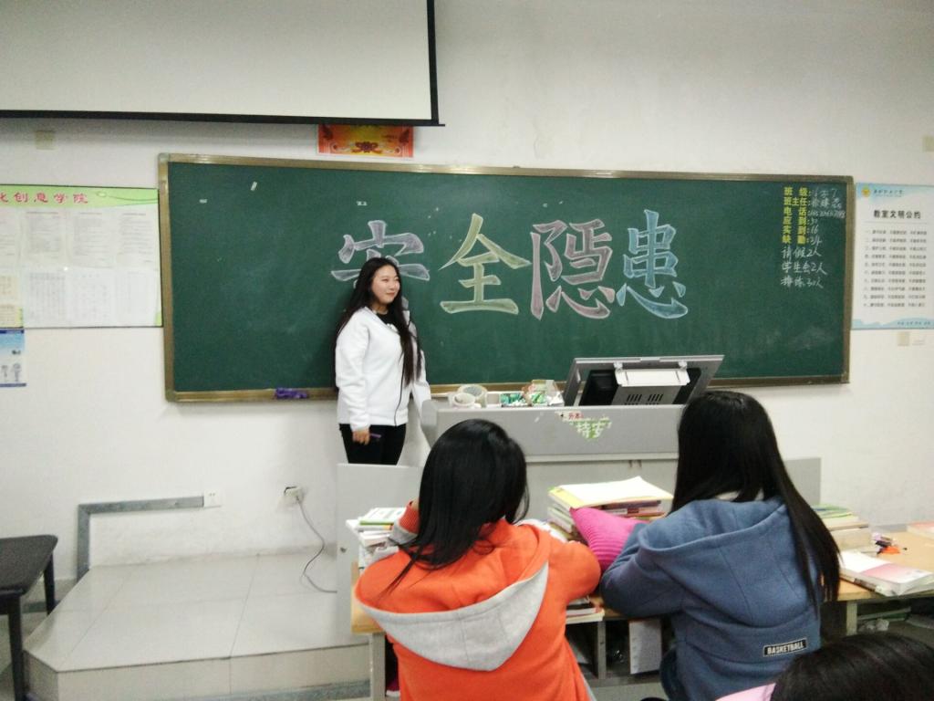为进一步强化学生安全管理工作,预防校园安全事故,维护校园安全稳定,3月26日,文化创意学院举行安全隐患排查和安全教育主题班会活动。 此次活动,主要讲解了关于进一步加强学生遵规守纪教育、加强学生用电安全和防火意识的教育、加强学生人身安全教育、加强学生餐饮安全教育、加强学生网络安全教育等内容。强化了学生的安全认识,提高了学生的思想认知。 为了我们校园的和谐,让我们积极行动起来,为校园的安全撑起一片天空。人人事事保安全,关键要从我做起,从现在做起,从点滴做起!