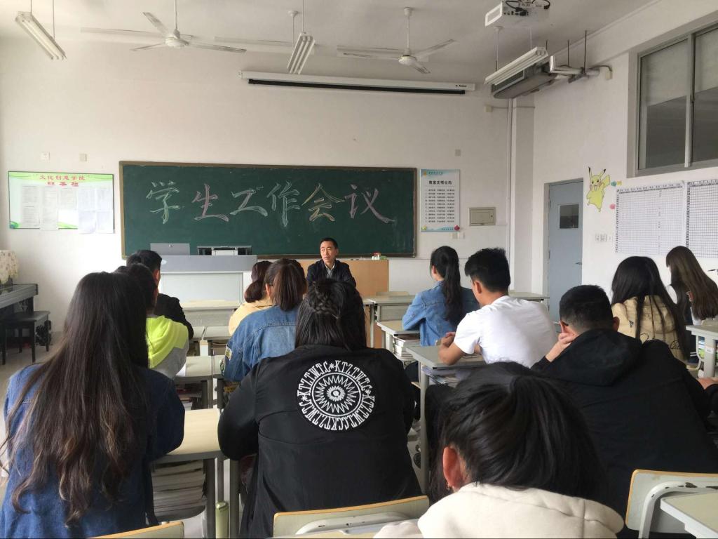 4月19日上午,文化创意学院学生工作会议在惠泽一号楼B区504教室召开。文化创意学院党支部负责同志出席本次会议,各班级学生干部代表、奖助学金学生代表参加了本次会议。