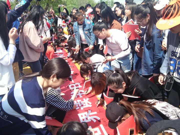 在千人诵读活动中,同学们与来自社会各界的读书爱好者一起,声情并茂吟诵了《声律启蒙》、《大学》、《中庸》、《论语》等经典片段,共同经受经典传统文化的洗礼。此次“读运会”借鉴运动会的理念,在举办过程中增加了读者的参与性、互动性和体验性,让广大青年在争当读运会冠军的过程中体验到读书学习的乐趣,同时倡导人们多读书、读好书,让读书成为一种生活时尚。诵读结束后,同学们逐一走向演讲台,在千人诵读横幅上郑重签字。