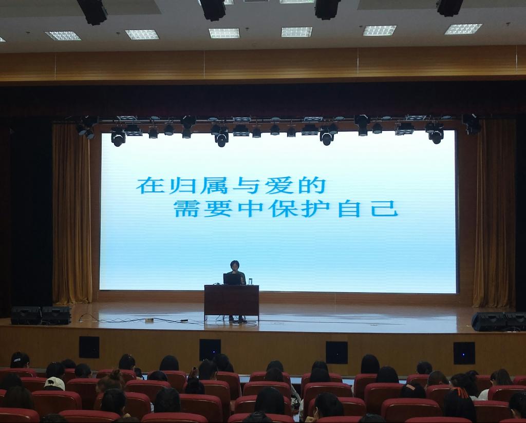 为更好地关注大学生心理健康, 6月1日下午,文化创意学院在滨海校区图书馆报告厅举办了以“在归属与爱的需要中保护自己”为主题的女生心理健康讲座,张艳老师担任主讲。