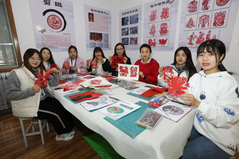 基地剪纸文化活动的开展,涌现出多姿多彩的优秀剪纸作品,有效推动了传统剪纸文化的传承和创新;通过基地学习活动,同学们迅速提高了剪纸技艺技能,提升了人文素养,陶冶了心灵,丰富了学院文化建设。(张桂玲供稿)
