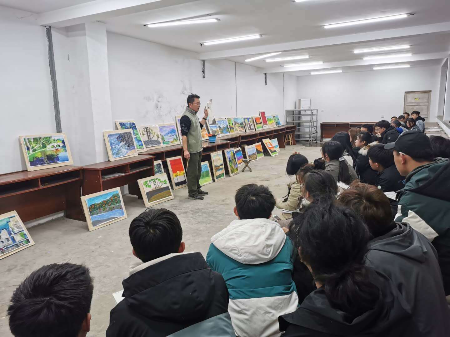 写生期间,指导教师带领学生了解当地的风土人情和山川地貌,现场示范、指导学生写生创作,并于晚上对学生的作品进行有针对性的讲评,让学生感受到艺术源于生活又高于生活。同时,学生们也积极遵守纪律,认真学习,其墨笔丹青出神入化。